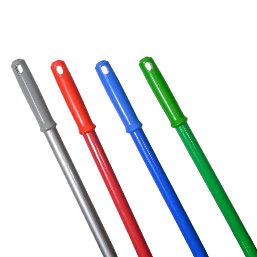 Available in multiple sizes (19mm/22mm), ergonomic virgin caps for grip, powder/PVC coated finish, thickness 0.25/0.28/0.4mm, lengths 100/120/142cm.