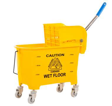 It contains Side press wringer to rinse the mop properly. Available colours - Yellow, Red, Green & Blue. Primary packing - Single pc Box Single Bucket Trolley 20Ltr